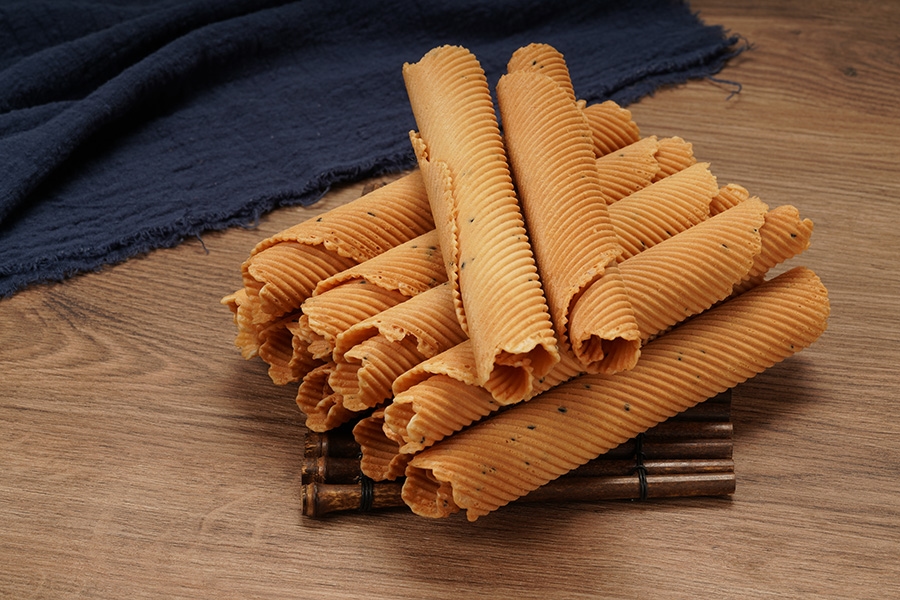 蛋卷是一种造型独特的饼干,富有浓郁的黄油香味,口感酥脆。爱普食品工业的焦糖色产品可以应用在蛋卷等烘焙产品中,起到提升产品色泽、减小成品批次间色差的作用。为使着色更加均匀,我们建议先将焦糖色与其他液体原料混合均匀,然后再按照配方制作饼干。爱普食品的乙基麦芽酚产品也可以应用于蛋卷中,为其增添香甜气味。